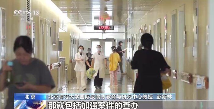 北京师范大学国际反腐败教育与研究中心教授 彭新林:具体来说首先是不敢腐是前提,那就包括加强案件的查办,对医药领域违纪违法行为的查办力度,不能腐关键就是要完善制度建设,让医院的采购或者是销售等等能够有章可循,能够受到监督。不想腐是根本,就是要通过典型案例,包括警示教育,公开曝光等多种形式,提高医疗工作人员认知觉悟。