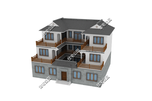 16×14米中式三层合院,四水归堂格局、步步高升外观,展现传统东方古韵之美(2293+)