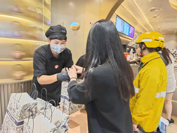 “一大早订单就爆了,做不完,根本做不完,黑糖波波小料一大早就用完了3锅。”喜茶北京前门大街店副经理张文秀“忙并快乐着”,即便正在接受采访,她也一直在叮嘱后厨增加供应。记者从喜茶方面了解到,和上周相比,喜茶众多门店销量增幅达400%,单店单日最高销量达4500杯,喜茶门店整体销量增幅达110%。立秋当天,喜茶各地门店均迎来了爆单。甚至一些消费者反馈,自己准备下单的时候发现喜茶小程序上显示前面还有700多杯等待制作。