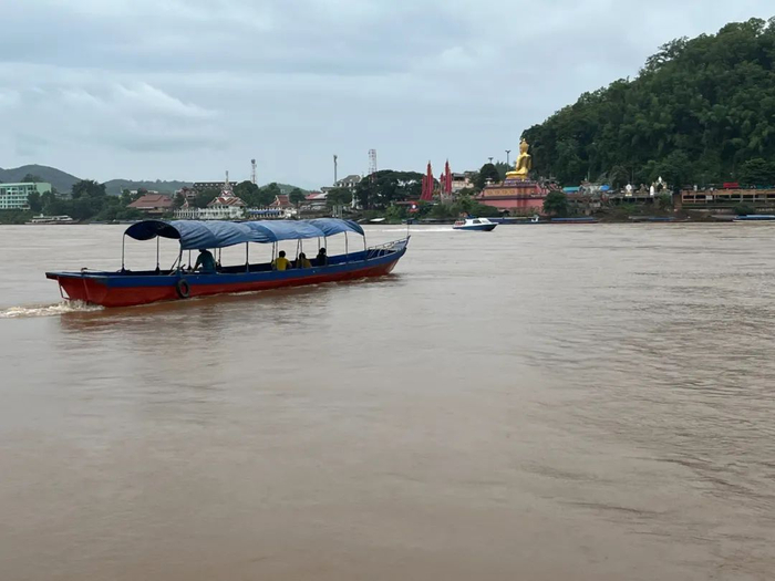 位于泰国清盛码头的“金三角”过境口岸,渡过湄公河就是老挝“金三角”特区,船上往来的一半以上是中国人。