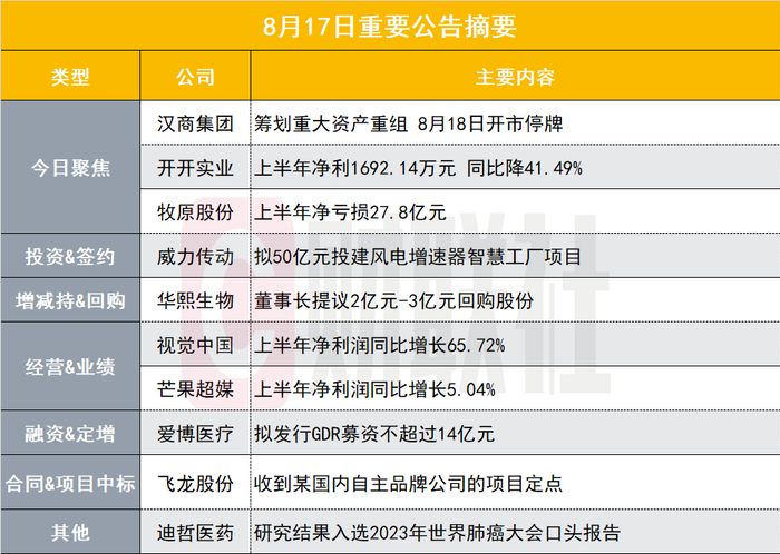 【汉商集团:筹划重大资产重组 8月18日开市停牌】