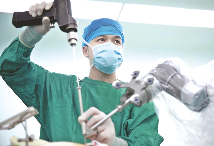 南宁市第二人民医院关节外科主任、主任医师梁红锁博士后精研学术,认真为患者做手术。