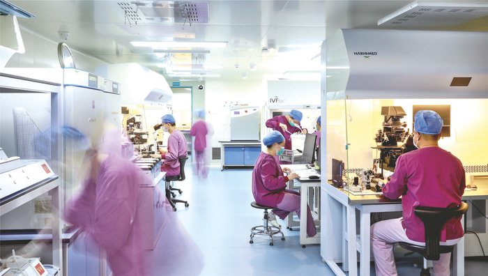 ◀南宁市第二人民医院生殖医学中心实验室里,生殖医学博士团队忙碌其中,探索实施广西区域生殖医学中心建设。