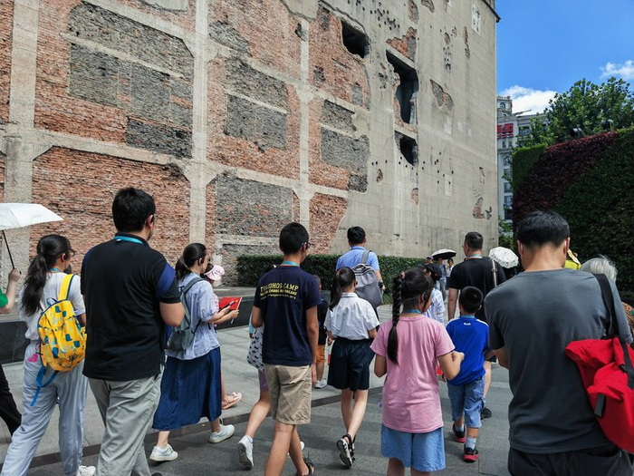 结束讲解前,沈伟颖对孩子们说:“这是一段‘落后就要挨打’的历史,更是一段不屈的抗战史。今天的你们处在和平年代,你们的竞争对手是来自世界各国的同龄人,少年强则国强,希望你们能从历史中汲取前行的力量,让自己和国家变得更加强大!”一名来自北京的小朋友告诉沈伟颖:“我们之前也参加过你的团,今天晚上还要参加你在外滩的微游团。”外地游客中也有了“回头客”,这令沈伟颖十分欣慰。
