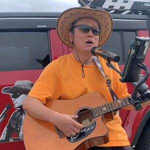 周云飞在高原地区为游客表演唱歌