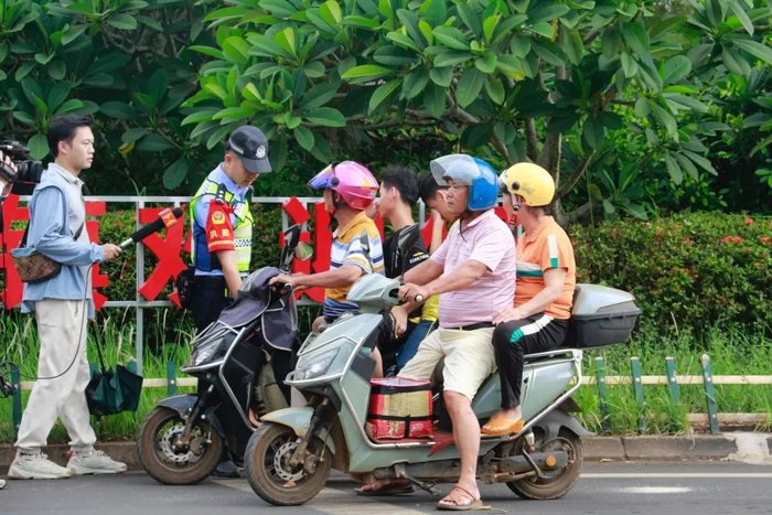 “交通人人参与、安全人人有责”。开展此次交通安全守护“亮盔行动”,海口警方秉持“人民至上,生命至上”的理念,坚持教育与处罚相结合的原则,以建立“和谐交通”为目标,以整治驾乘人员不佩戴头盔、未悬挂号牌上路行驶、闯红灯等“一盔一牌一闯”交通违法行为为重点,强化共建共治、注重宣传教育,组织民辅警会同道安委各成员单位工作人员、网格员、志愿者等社会力量深入乡镇、农村、街道、社区、校园、工地等,通过交通安全讲座、发放宣传资料、赠送安全头盔等方式,宣传骑乘电动车不戴安全头盔、违法载人等交通违法行为的危害性,以及引发交通事故对自己和家庭带来的痛苦和伤害,引导电动车驾乘人员自觉佩戴安全头盔,自觉抵制各类交通违法行为。