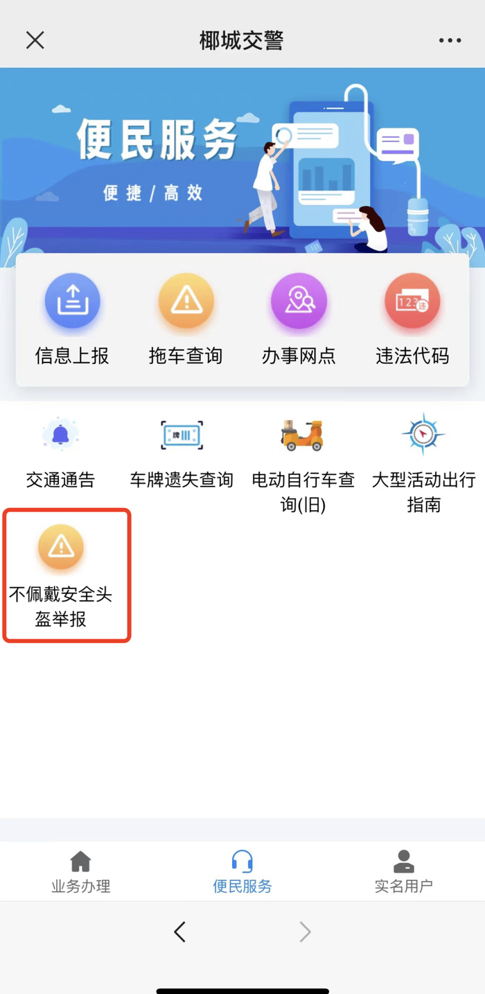 此外,海口公安交警部门同步启用了随手拍“不佩戴安全头盔举报”平台,市民通过关注“椰城交警”微信公众号即可使用,充分借助科技手段让交通安全守护“亮盔行动”深入海口大街小巷,做到发现一起,教育一起,警示一片,努力促使交通参与者实现自我教育、自我管理,从根本上提高广大人民群众参与交通、约束自我的自觉性,增强安全意识,杜绝不佩戴头盔、未悬挂号牌上路行驶、闯红灯等交通违法行为。