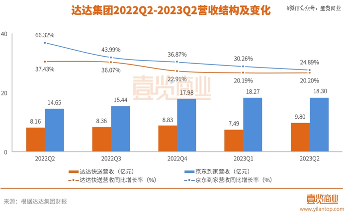 从2021年4月开始,达达快送和骑手之间通过第三方公司直接结算,达达快送的营收统计规则发生变化,京东到家开始成为了达达集团的营收*来源。跟京东并表之后,达达快送和京东到家虽然营收增速持续放缓,但20%以上的同比增长率相较于行业平均水平依然可观。