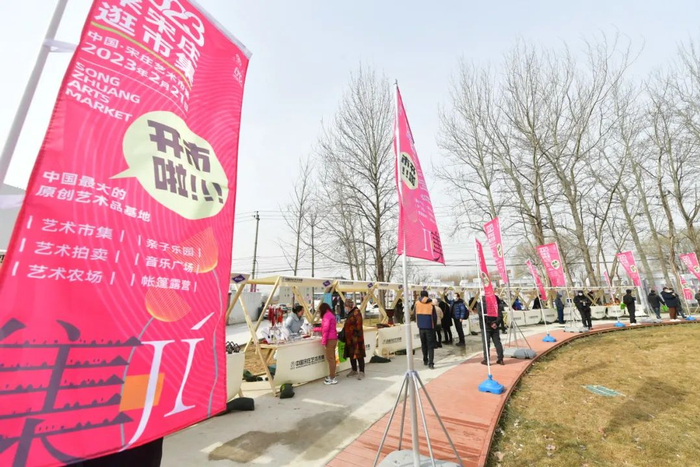 在小堡工业区路东侧,一座总占地面积约6万平方米的新型城市艺术生活综合体今年初正式营业。400家商铺带来的国潮、网红书籍等工艺品,琳琅满目地呈现在市民眼前。不仅如此,这里还推出包括艺术拍卖、艺术农场、帐篷露营、亲子乐园、音乐广场等崭新业态。目前,宋庄艺术市集一期的市集大道、中心广场、音画广场、停车场等均已相继投入使用,二期正在加快施工建设中。