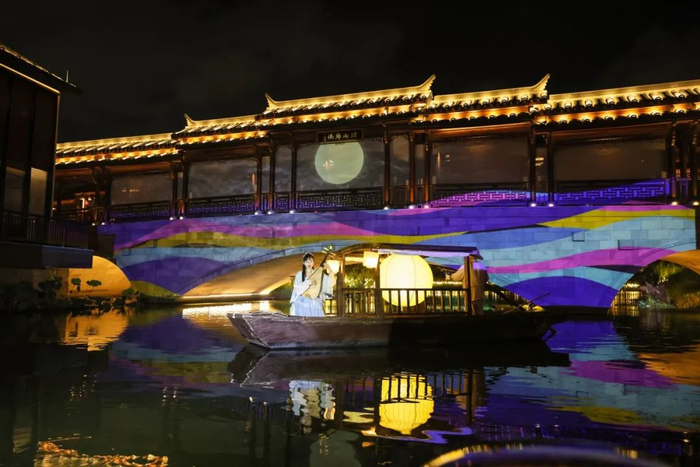 当夜幕落下,属于江南的夏夜就开始了,夜游蟠龙,在这里可以打卡的浪漫趣事不止一件,放河灯祈福、看游船演出、绚丽光影秀、在泡泡派对放肆快乐……