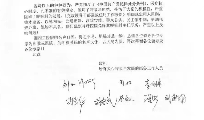 9个医务人员实名举报这家医院呼吸科的主任孟婕。