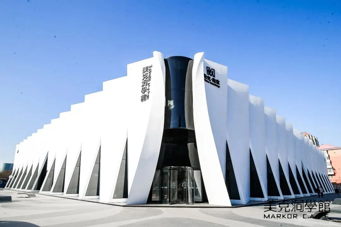有着“北京小悉尼”之称的美克洞学馆,外观由白色几何块组成,黑白相间,简约高级。