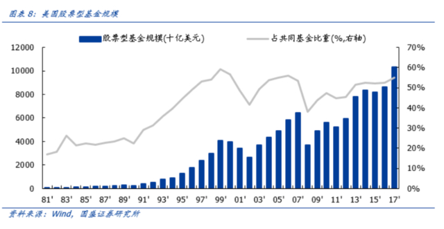 这些新增的养老金通过个人直接投资股票、或者通过共同基金间接投资的模式,开始进入资本市场,并成为共同基金的主要资金来源,在80年代后期迎来了股票牛市之后变得更为显著。