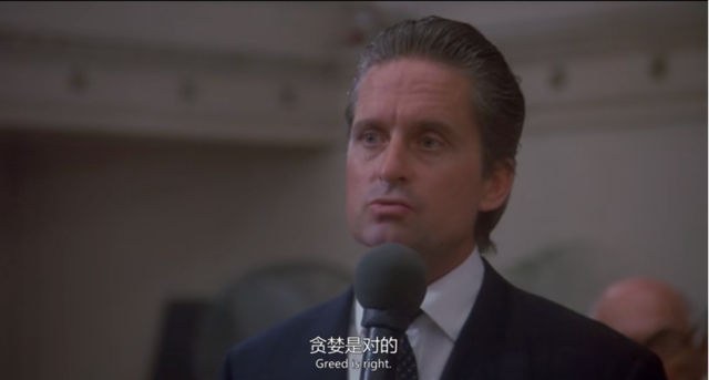 电影的故事背景是1985年的华尔街,而道格拉斯的这句话正是那时候每个证券经纪人的真实态度:脑子里只有钱,而只要促成交易,就有钱赚。
