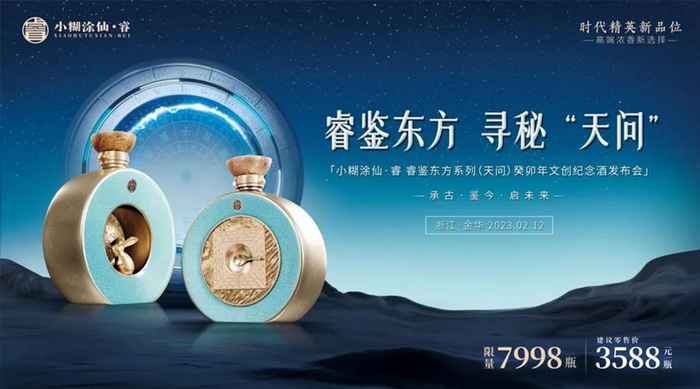 今年2月,小糊涂仙·睿文化白酒创新标杆新品——睿鉴东方系列(天问)癸卯年文创纪念酒(下称睿鉴东方系列(天问))问世。