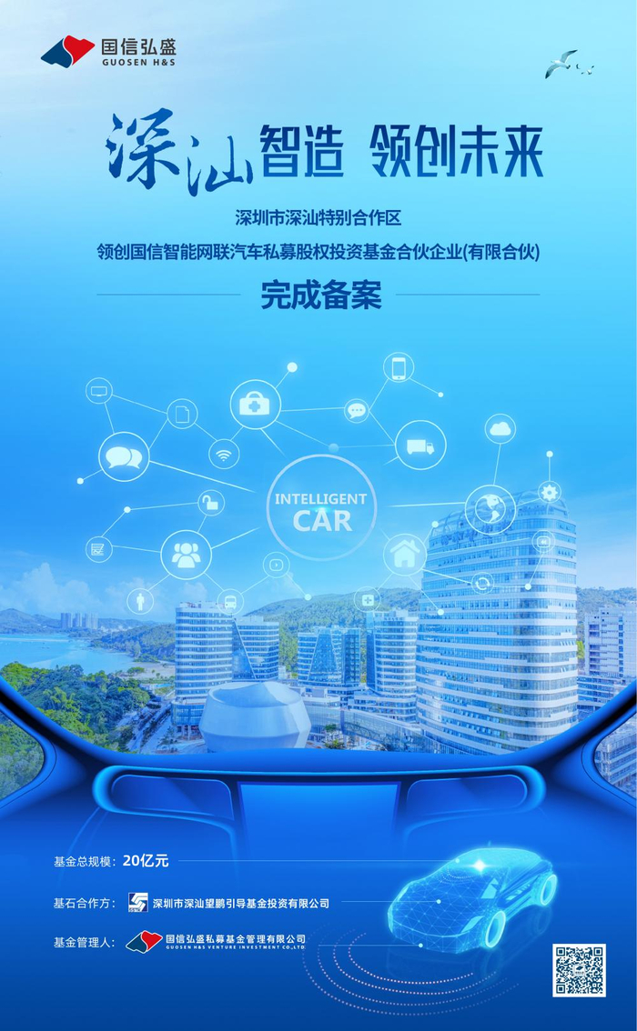 近日,国信弘盛旗下“深圳市深汕特别合作区领创国信智能网联汽车私募股权投资基金合伙企业(有限合伙)”(简称“深汕国信基金”)完成监管备案,基金总规模20亿元人民币,深圳市深汕望鹏引导基金投资有限公司作为基石合作方,国信弘盛作为管理人及普通合伙人。深汕国信基金是深圳市深汕特别合作区正式挂牌以来新设规模最大的产业基金之一,该基金主要投向智能网联汽车上下游产业链。