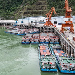 2021年6月,构皮滩通航工程完成全线集控过标船测试,正式投入试运行。如今,船舶在构皮滩能轻松跨越230多米高的大坝,全程只需要一个多小时。