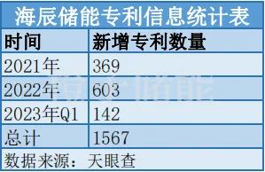 核心技术研发上,海辰储能累计专利达1567项。从2021年新增369项到2022年新增603项,再到今年第一季度实现的新增专利142项。可以看出,海辰储能在自主研发的道路上一直保持高速增长。
