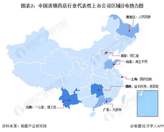 从区域分布看,中国连锁药店经营企业主要分布在湖南、云南、广东、上海等省市,例如湖南拥有益丰药房、老百姓;云南拥有一心堂和健之佳。
