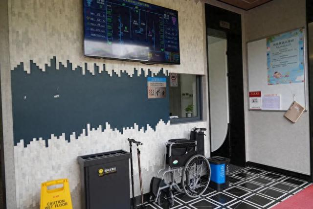 正在打扫的保洁员告诉记者,这个公厕毗邻苏州河,周边有多个居住区以及高校校区,平日人流量约200人次使用,周末更达300人次。保洁员说:“附近还是有很多散步的老年人,大家反馈马桶区域有个扶手可很方便起身,而且我们将轮椅放在门口,我们保洁员也会负责帮助有需要的市民使用。”