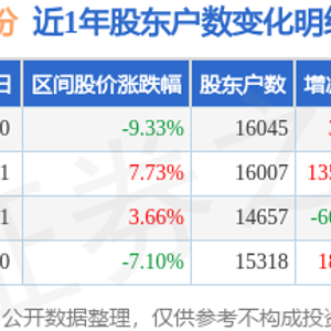 劲拓股份(300400)6月30日股东户数1.6万户,较上期增加0.24%