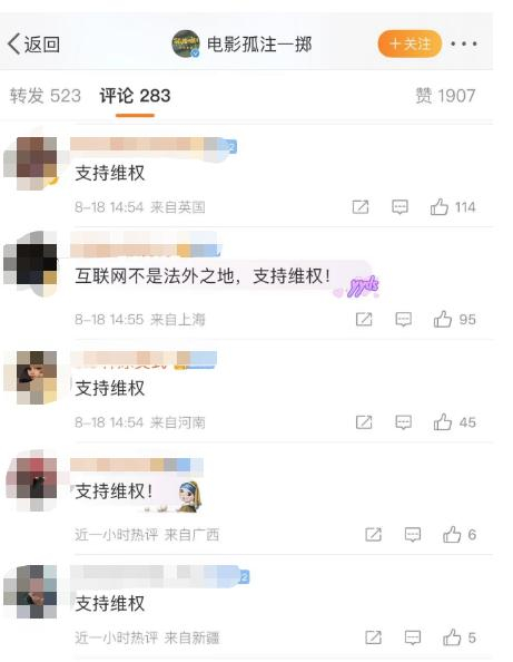 对这场互发声明的争议事件,有部分网友称“支持双方维权”,也有网友说,“票房低了不告,告赢了他有赔偿,输了有热度。不亏。让子弹飞一会”。