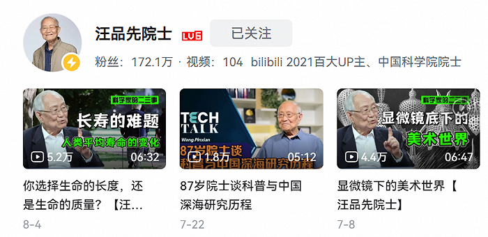 他们不只是一二线年轻创作力强的用户,也有不少专业素养强的学者专家、科普爱好者。