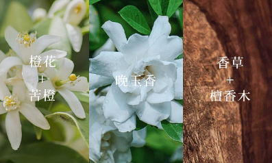 前调:橙花、苦橙;中调:晚香玉;后调:香草、檀香木。