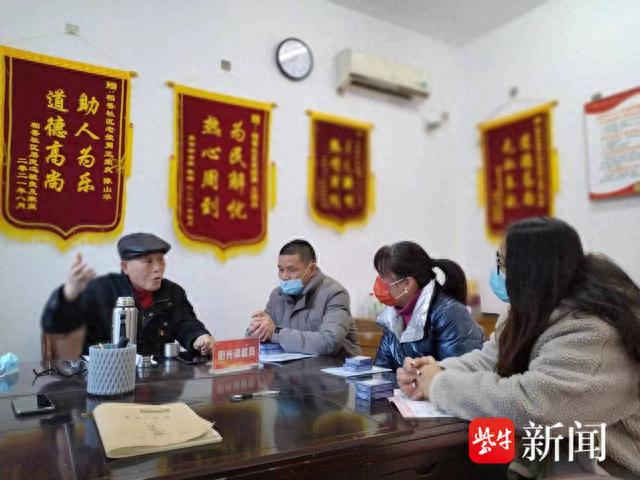 王荣庆(左一)在调解纠纷