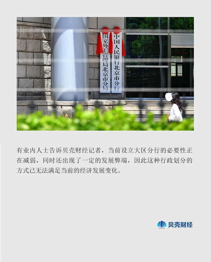 有业内人士告诉贝壳财经记者,当前设立大区分行的必要性正在减弱,同时还出现了一定的发展弊端,因此这种行政划分的方式已无法满足当前的经济发展变化。