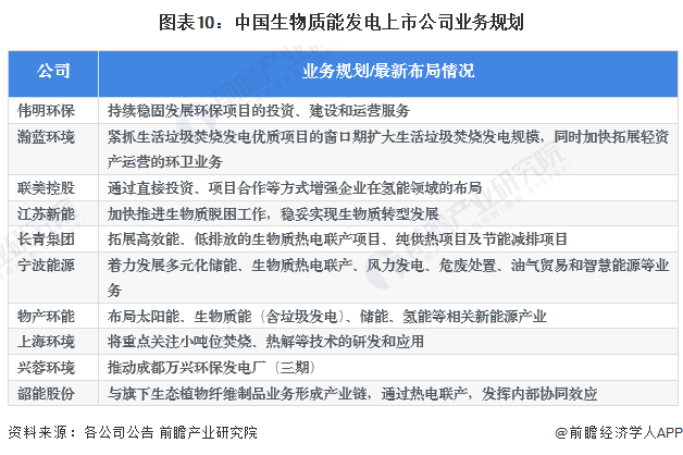 4、生物质能发电行业上市公司业务规划对比