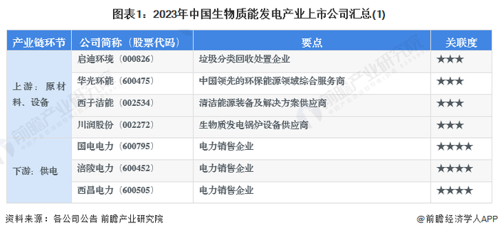 1、生物质能发电行业上市公司汇总