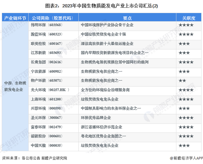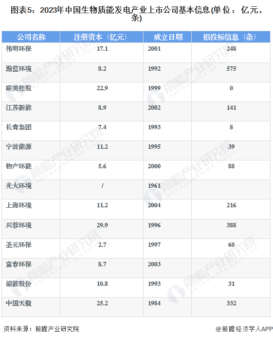2、生物质能发电上市公司基本信息对比