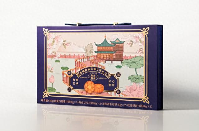 上海人熟悉的中华老字号老城隍庙的月饼,今年在国潮文化上继续深耕创新。豫园的众多经典元素:九曲桥、湖心亭、荷花池,以及诸多餐饮老字号名店等,都围绕着文化主题“幸福”与月饼融为一体,故起名叫“幸福月饼”。