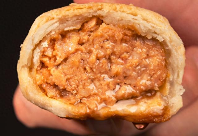 据上海德兴馆非遗传承人张坚介绍,南乳鲜肉月饼沿用的是他们店里的传统鲜肉月饼配方,不同的是在猪肉馅芯里加入了一定比例的广合红方腐乳,浸润了腐乳色泽后的馅芯在烘烤后会呈现出淡淡的玫瑰粉色,透着汤汁看起来十分有食欲,吃起来也鲜香多汁,带有一股浓郁的腐乳发酵香。