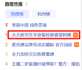 近日,网友黄小姐称自己北大研究生毕业后,留在北大食堂工作,引发网友高度关注,8月18日相关新闻一度冲上百度热搜榜第一。