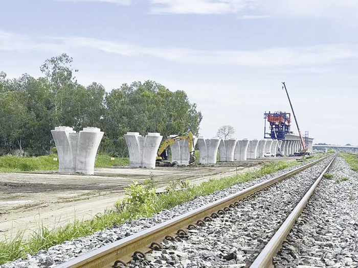 与此同时,在大城府火车站向南约7公里之外,一条新高速铁路正沿着与旧铁轨平行的方向建设,它就是中泰高铁。中泰高铁一期工程从泰国曼谷向北连接呵叻府,全长约250公里,这是中国境外首次使用中国标准并由所在国出资兴建的高铁项目,也是中泰两国高质量共建“一带一路”的重点民生工程。位于大城府的中泰高铁项目4-3标段由中国建筑股份有限公司承建,自2021年8月30日开工以来,在中泰方团队通力协作下,项目履约工作稳步推进,目前已正式进入全面施工阶段。