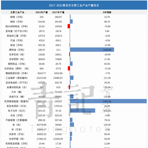 根据2022年青岛统计年鉴,青岛市2021年民用钢质船舶产量268.12万载重吨,五年激增2497.9%。