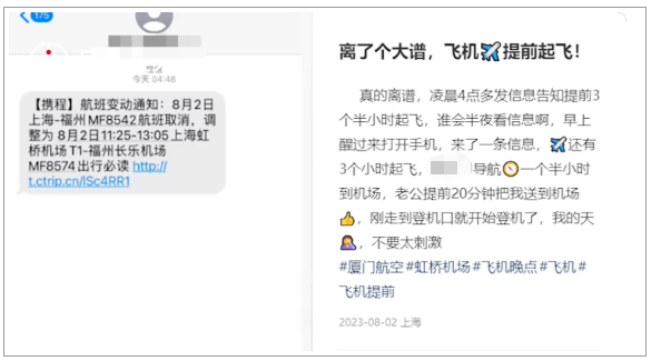 女子凌晨收到短信,睡醒崩溃赶往机场……网友:我也遇到过