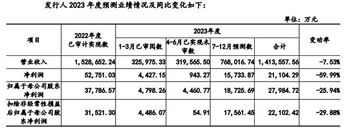 预计2023年上半年扣非净利降79.79%至74.73%