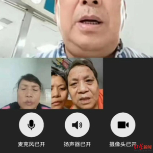 ▲7月20日,罗文忠(上)在病房内与姐姐罗文庆、妹妹罗文任视频通话
