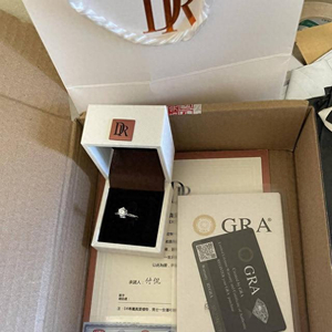 随后记者花费59.8元购买一款1克拉的戒指及“DR专柜包装”,并将姓名发送给客服。收到货物为,印有DR LOGO的手提袋、包装盒、清洁布,及珠宝鉴定证书、GRA证书、真爱协议、戒指。其中,珠宝鉴定证书上写道“莫桑石戒指、银白色、2.18g、ag925%”等信息,GRA证书上均为英文,客户称其为莫桑石证书。
