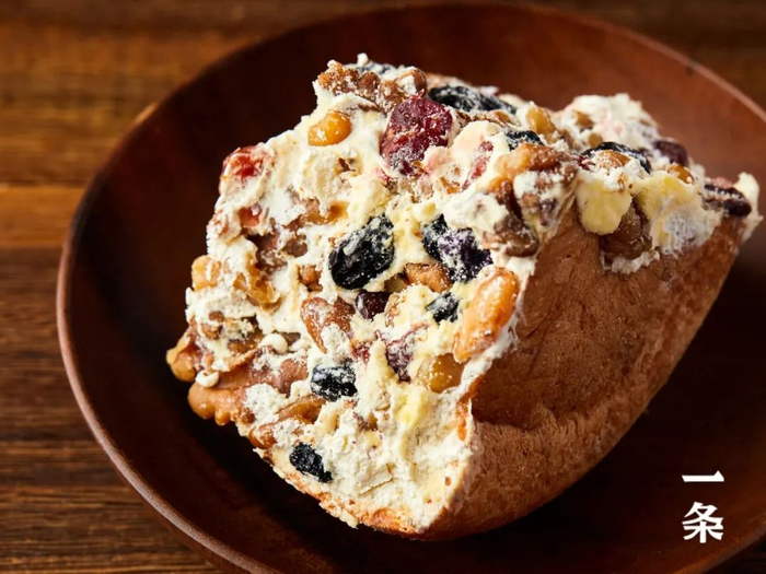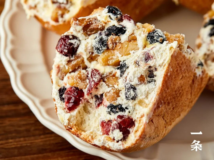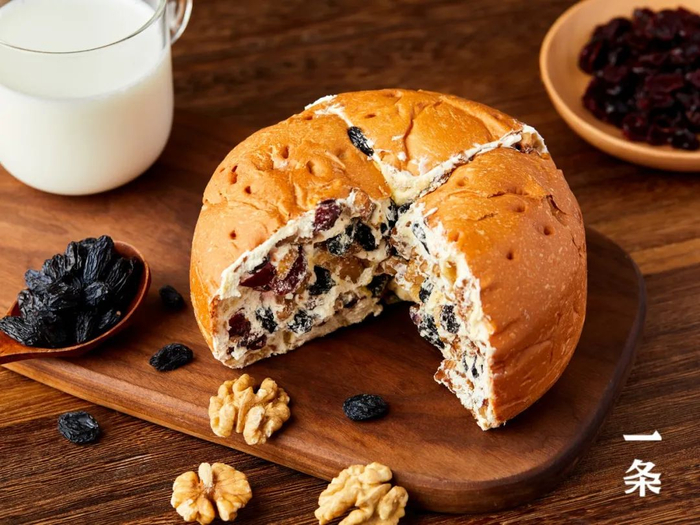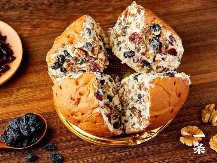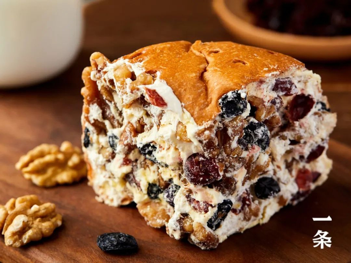 浓郁的奶味占据了整个口腔,接着坚果的香、黑加仑的甜、蔓越莓的酸、面包的韧……层层堆叠而来,香甜不腻。