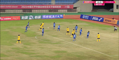 第69分钟,又是倪梦婕,她在禁区左路的突破被对方球员绊倒,主裁判罚点球!