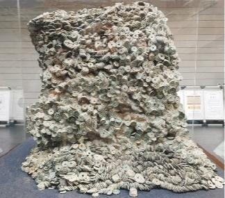 辽阳博物馆展出的金代窖藏铜钱,其中有大量金世宗时期的“大定通宝”。