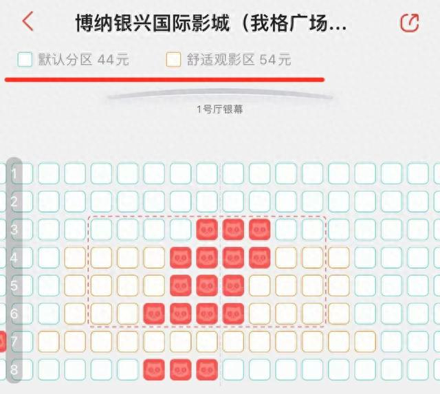 从购票平台上可以看到,博纳银兴国际影城(我格广场店)舒适观影区的票价要比普通座位高出10元。
