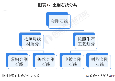 根据母线材质的不同,可以分为碳钢金刚石线和钨丝金刚石线。按照生产工艺,可以分为电镀金刚石线和树脂金刚石线。