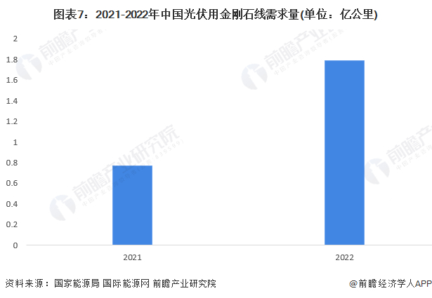 2、中国光伏用金刚石线需求量:2022年需求在1.79亿公里左右