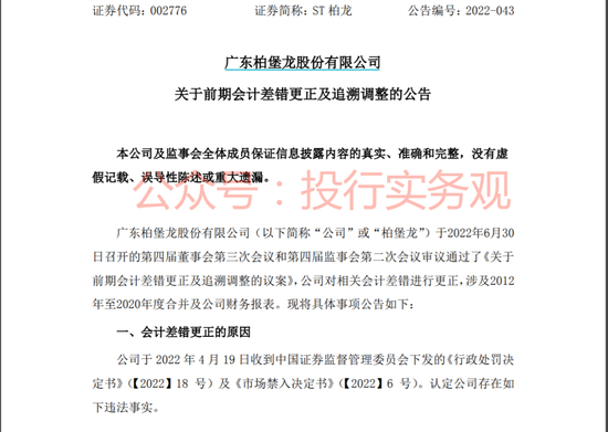 关于柏堡龙的财务造假内容,此前证监会已公布过: