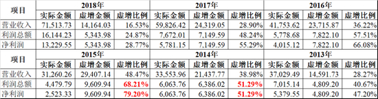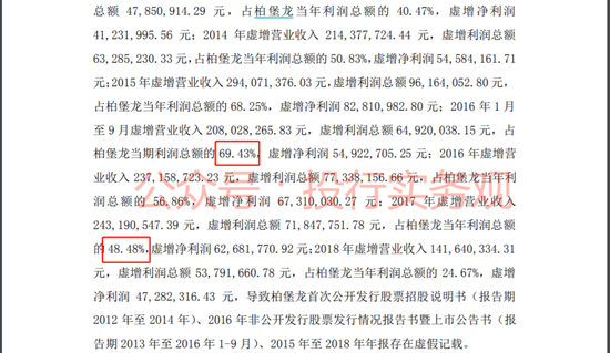 最后,我们再来看看柏堡龙财务造假的虚增比例: